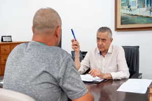 Prevenção da Dengue: agentes de endemias vistoriam residências no bairro Harmonia. Denúncias de possíveis focos de dengue podem ser feitas pela Central de Atendimento ao Cidadão (CAC) pelos telefones: 08005101234 ou 3236-1079.