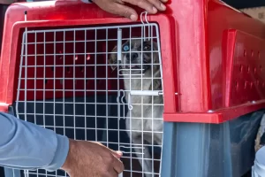 Os cães estavam no pátio de uma residência no bairro Olaria, onde viviam em condições precárias.