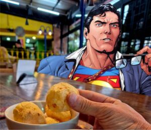 Minha crônica de hoje, em Gotham City, se passa em um ambiente (café), que funciona como um refúgio harmonioso e irônico, contrastando com o caos lá fora.