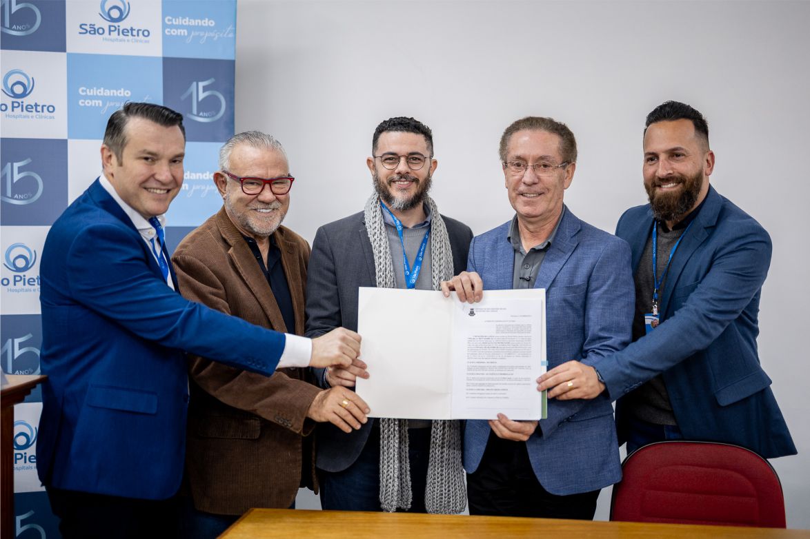Foi assinado na manhã desta sexta-feira (25) o acordo de cooperação técnica entre a Prefeitura de Canoas e o Grupo São Pietro Hospitais e Clínicas para viabilizar a instalação do novo Hospital de Olhos de Canoas. O hospital, que deverá ser instalado no lado oeste da cidade, ampliará o número de atendimentos oftalmológicos no Município tanto em quantidade de pacientes quanto em número de habilitações oferecidas.
