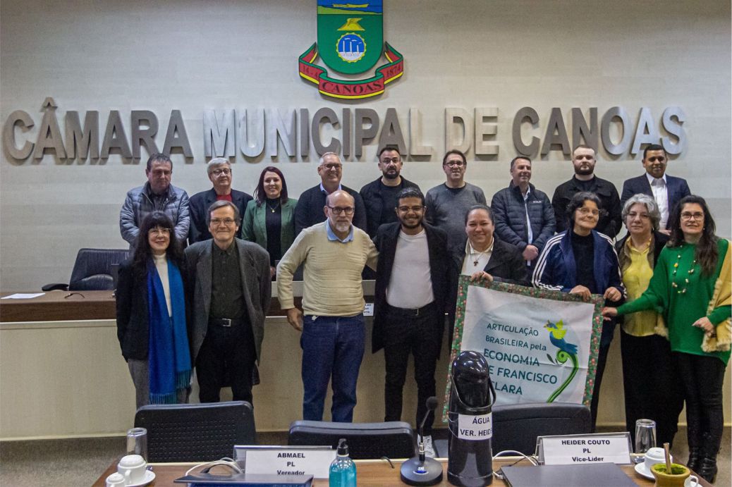 O momento celebrou os 10 anos da publicação da encíclica Laudato Si’, do Papa Francisco, documento que convoca a humanidade a uma mudança profunda na relação com a natureza e com os mais pobres. A data é considerada um marco por movimentos ambientais e religiosos em todo o mundo, e serviu como ponto de partida para uma série de reflexões apresentadas no plenário da Câmara. “Essa encíclica não trata só do meio ambiente, ela trata do que estamos vivendo hoje: as catástrofes anunciadas. Aqui em Canoas, vivemos isso de forma direta com as enchentes. O movimento Laudato Si’ nos mostra que fé e consciência ecológica caminham juntas”, afirmou Constantino em sua fala de abertura, saudando os animadores e representantes presentes na sessão.
