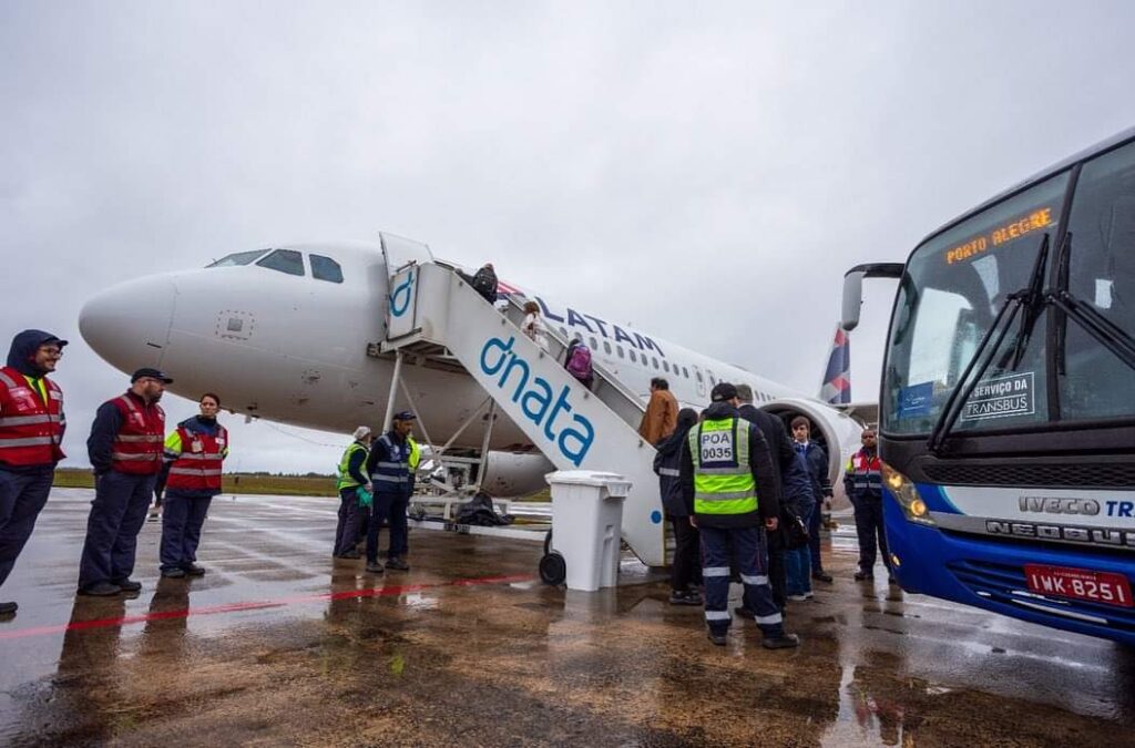 Uma aeronave da Latam foi a primeira a decolar na pista da Base Aérea de Canoas, às 9h30 desta segunda-feira. Ela trouxe do Aeroporto de Congonhas, em São Paulo, cerca de 170 pessoas e retornou para São Paulo com passageiros do Sul. Às 14h, chegaram passageiros de Guarulhos e, por fim, às 15h30, saiu o último voo desse primeiro dia, com destino a Guarulhos.