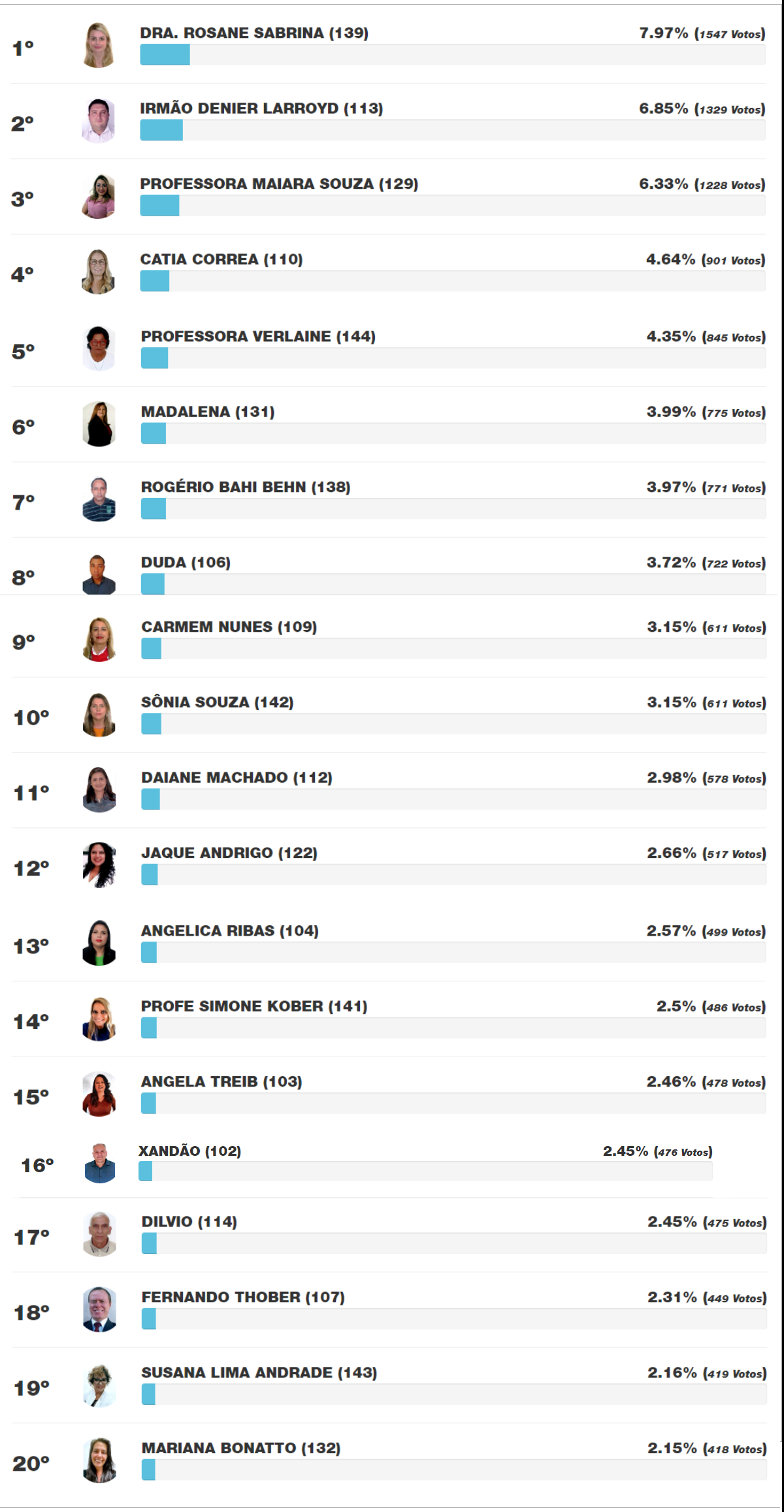 DRA. ROSANE SABRINA (139) | 7.97% | 1.547 votos