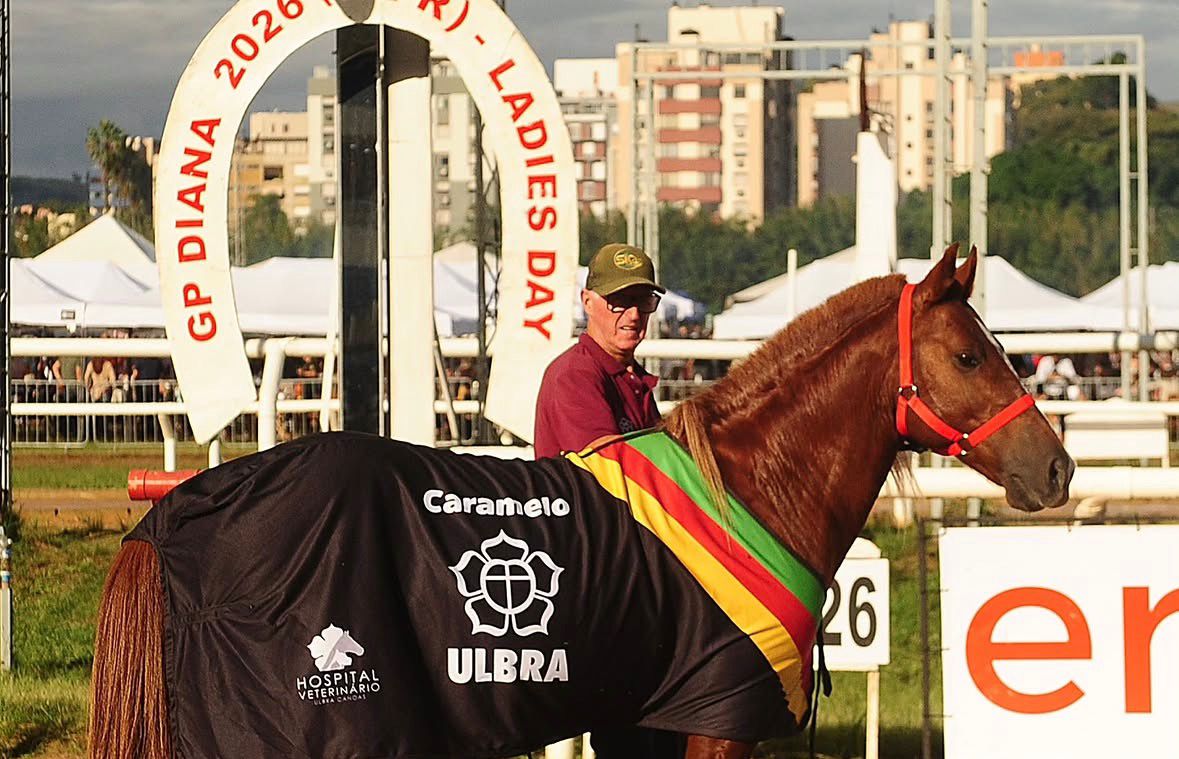 O cavalo Caramelo, símbolo de superação das enchentes que atingiram o Rio Grande do Sul em 2024, foi o grande protagonista de uma tarde de emoção no último sábado (25) no Jockey Club de Porto Alegre. Durante a programação do tradicional Ladies Day, o animal foi homenageado e emprestou seu nome ao sexto páreo da competição, recebendo uma medalha em reconhecimento à sua trajetória que comoveu o Brasil.