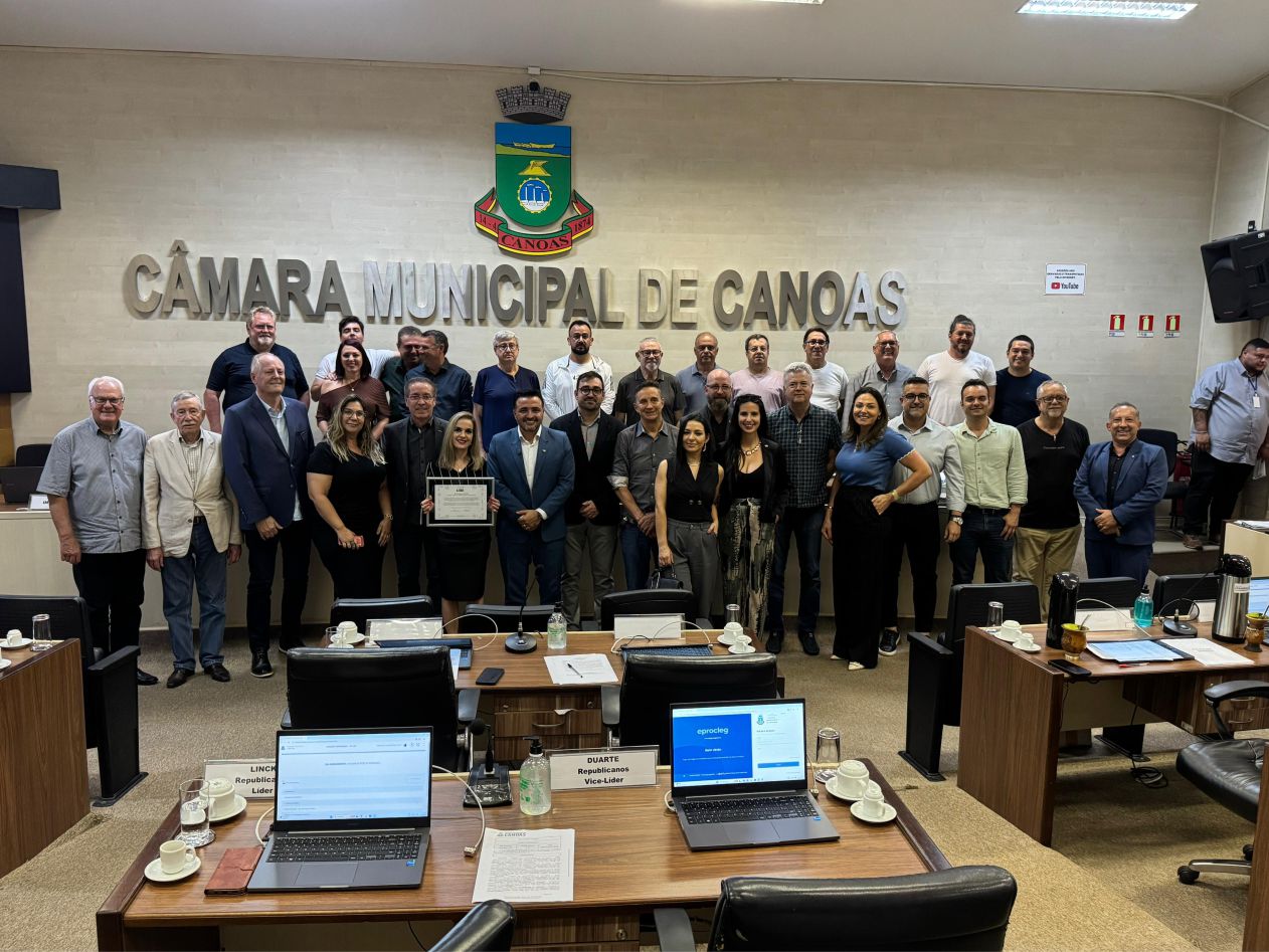 A Câmara Municipal de Canoas promoveu, durante a sessão plenária da última terça-feira (4), um Grande Expediente proposto pelo vereador Rodrigo D’Avila (Novo) para receber representantes da Associação do Mercado Imobiliário de Canoas e Nova Santa Rita (ASSOCI). A atividade teve como objetivo reconhecer a contribuição da entidade para o fortalecimento do setor imobiliário e para o desenvolvimento urbano da cidade.