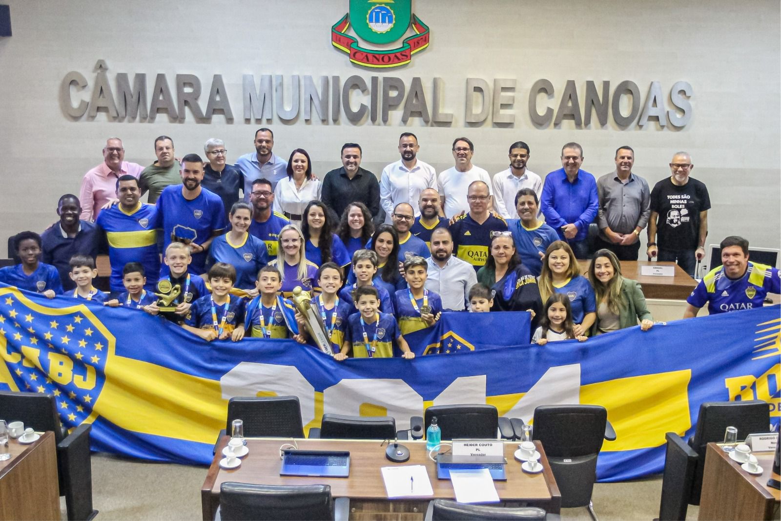 A Câmara Municipal de Canoas prestou, nesta quinta-feira (16), uma homenagem à Escola de Futebol Boca Juniors de Canoas pela conquista inédita da Iberleague Sub-11 Ouro 2025, considerada a principal competição de Futebol 7 de categorias de base do estado. A iniciativa do Grande Expediente foi proposta pelo vereador Duarte (Republicanos), com a presença de integrantes da equipe técnica do clube e familiares dos atletas.