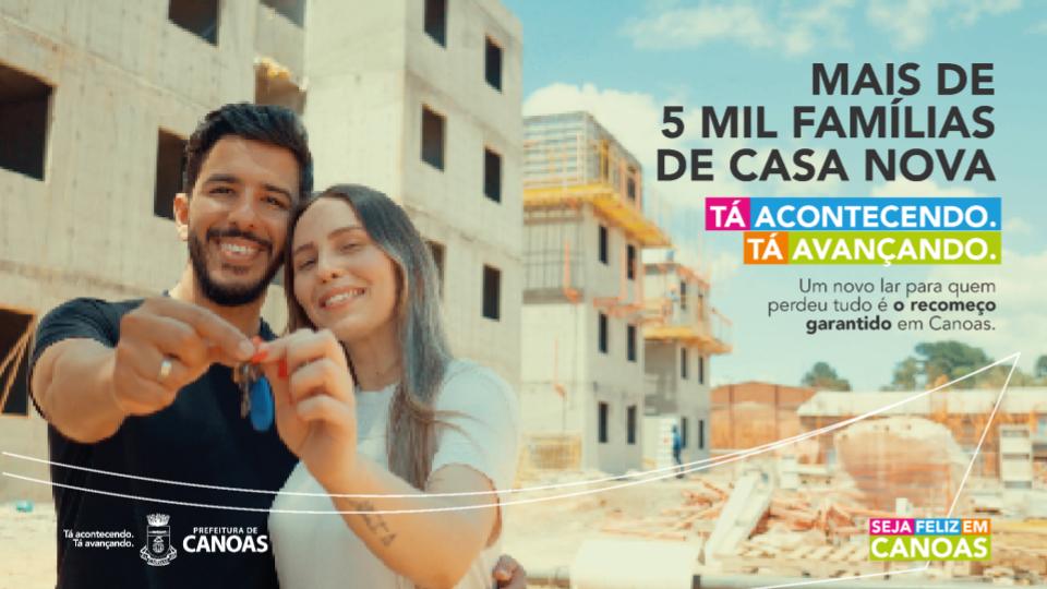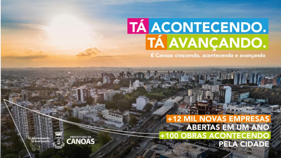 Com o conceito “Tá acontecendo. Tá avançando.”, a Moove reforça que a Prefeitura de Canoas está em movimento. Em números, são mais de 12 mil novas empresas abertas em um ano, mais de 100 obras em andamento na cidade, mais de 5 mil famílias encaminhadas para uma nova casa, passe livre consolidado como política definitiva e importantes obras de proteção contra cheias já entregues.