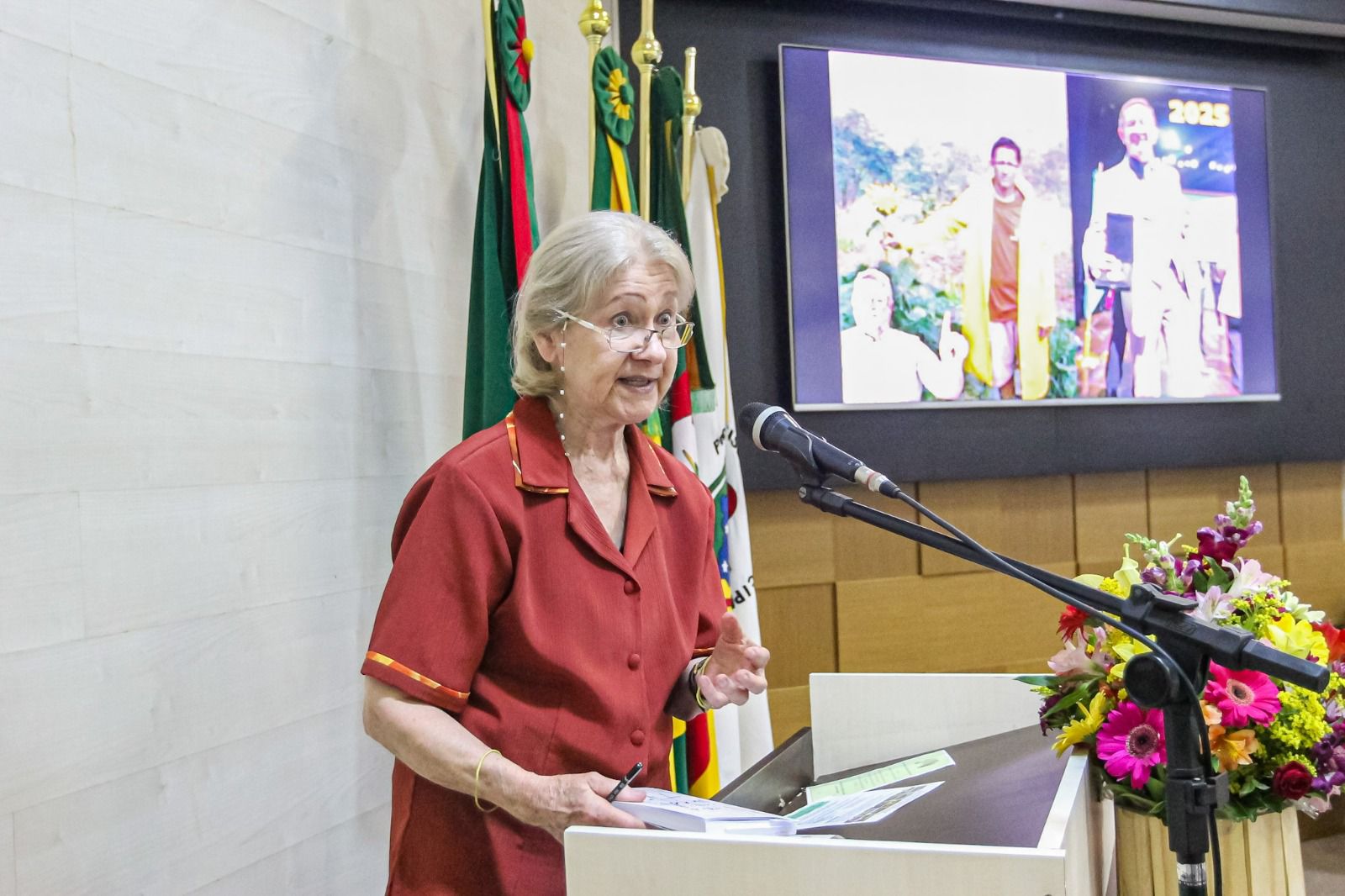 A fala de Isolde Silveira, co-fundadora da Comunidade Terapêutica Fazenda Renascer, trouxe uma dimensão ainda mais profunda à solenidade. Em discurso carregado de humanidade, ela ressaltou a importância de acreditar nos processos de transformação e de agir “mesmo com medo”, em alusão ao título do livro que levou consigo ao plenário. “Nada acontece por acaso. A história do Marco mostra que sempre há caminhos quando buscamos o bem”, afirmou. Ao final da solenidade, Marco recebeu o título das mãos do proponente, vereador Bamberg, do prefeito Airton Souza e do vereador Patrício (PSDB). A homenagem foi celebrada de pé, com aplausos. “O guri de Uruguaiana agora é, oficialmente, um Canoense de Gema”, brincou Marco, em alusão à frase com que encerrou seu discurso.