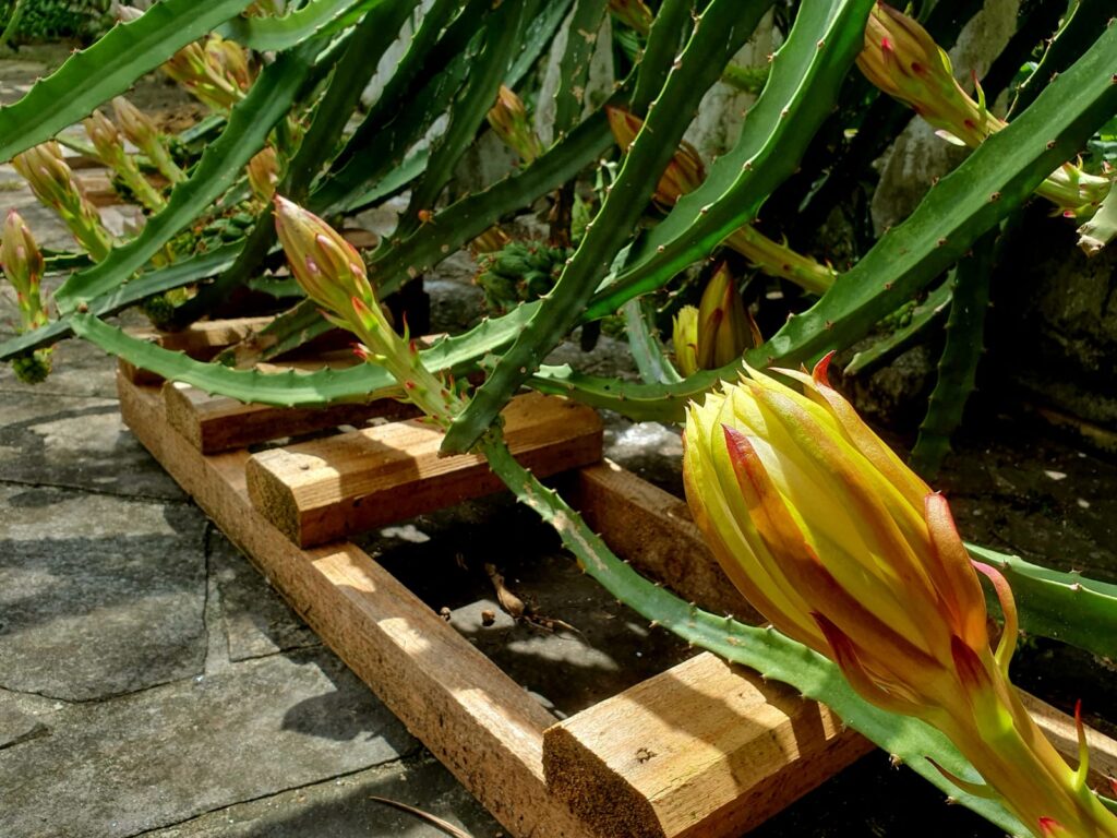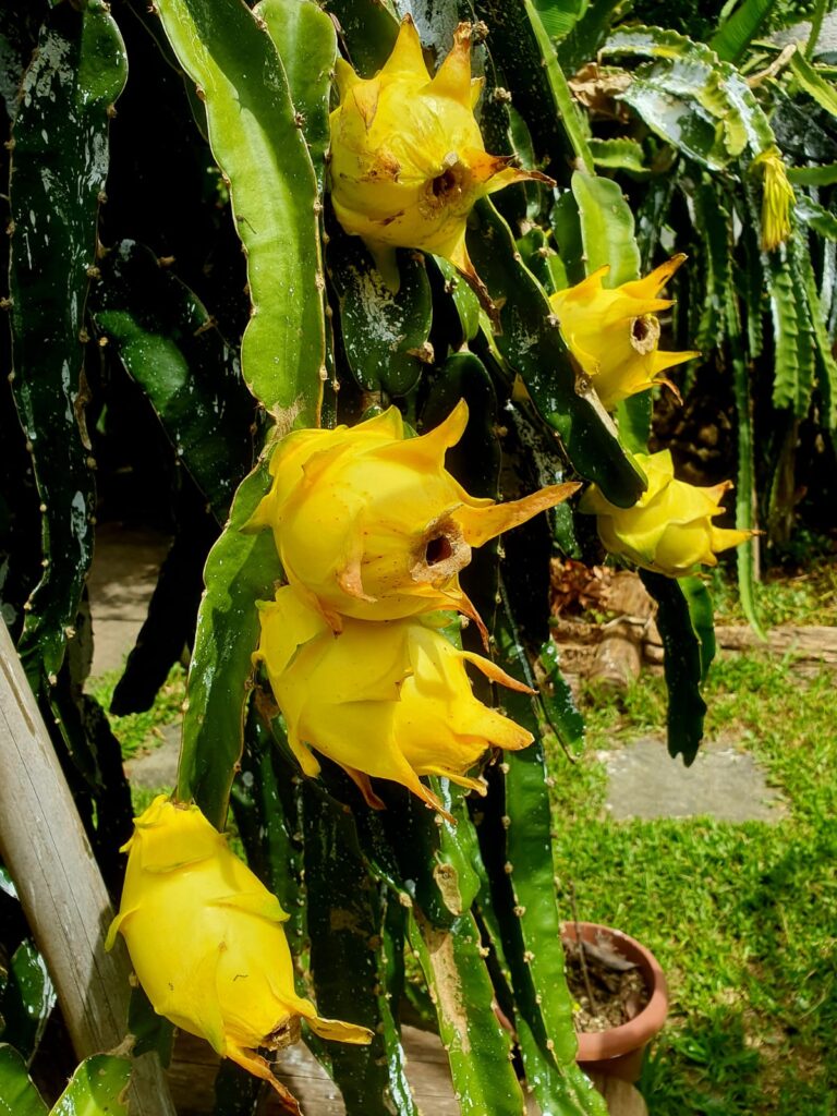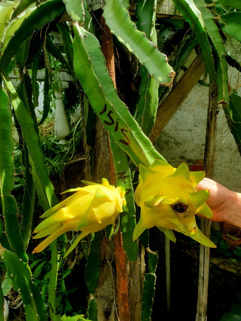 Com a pergunta e atrás de respostas, ele foi à CEASA e comprou as três variedades que existiam por lá, a branca comum, a Pink e a amarela colombiana. O fato ocorreu há sete anos. Foi amor à primeira vista, ou provada, vocês escolhem o tema. Paulinho virou um pesquisador e passou a estudar e conhecer mais sobre Pitayas.
