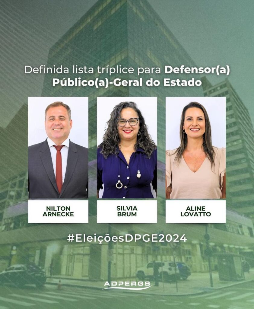 Nilton Leonel Arnecke Maria foi anunciado como o novo Defensor Público-Geral pelo governador Eduardo Leite, após uma eleição interna realizada entre os dias 11 e 15 de março. Rodrigo Busato, em parceria com o publicitário Edson Gandolfi e a jornalista Larissa Schreiber, liderou a campanha que resultou na vitória de Nilton, que recebeu 257 votos. Silvia Brum e Aline Lovatto, também integrantes da chapa de Rodrigo, obtiveram 250 e 243 votos, respectivamente.