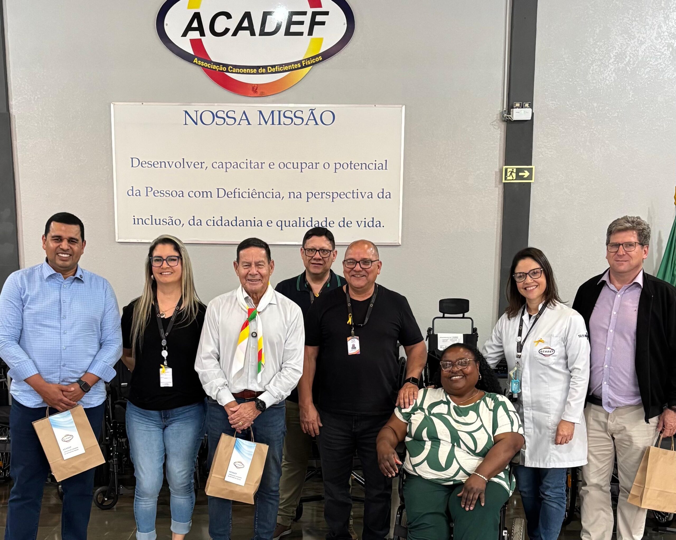 Em seguida, Mourão visitou a Associação Canoense de Deficientes Físicos (ACADEF), onde conheceu a estrutura e o trabalho de excelência prestado pela instituição em prol da inclusão e da reabilitação de pessoas com deficiência. No encontro, assumiu o compromisso de apoiar a conclusão da construção e o aparelhamento do novo prédio da entidade.