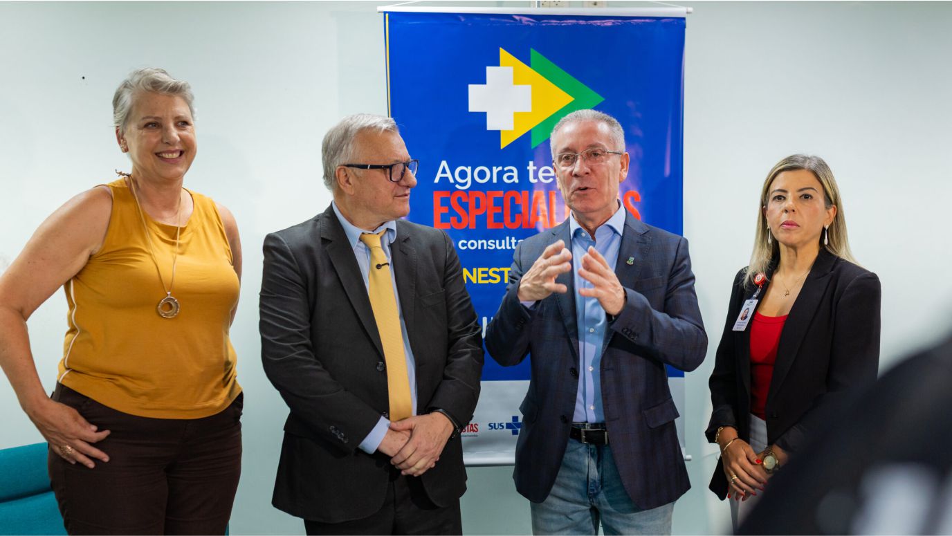 Airton Souza, acompanhado de secretários municipais e adjuntos, recebeu o prefeito de Porto Alegre, Sebastião Melo e o secretário da Saúde da capital, Fernando Ritter para discussão das necessidades dos dois municípios.