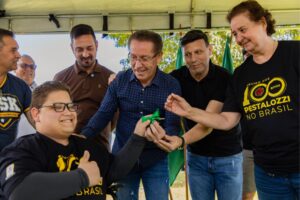 O principal ato da manhã, foi a entrega de um micro-ônibus adaptado e totalmente equipado para a Associação Pestalozzi, uma demanda há muito sonhada.