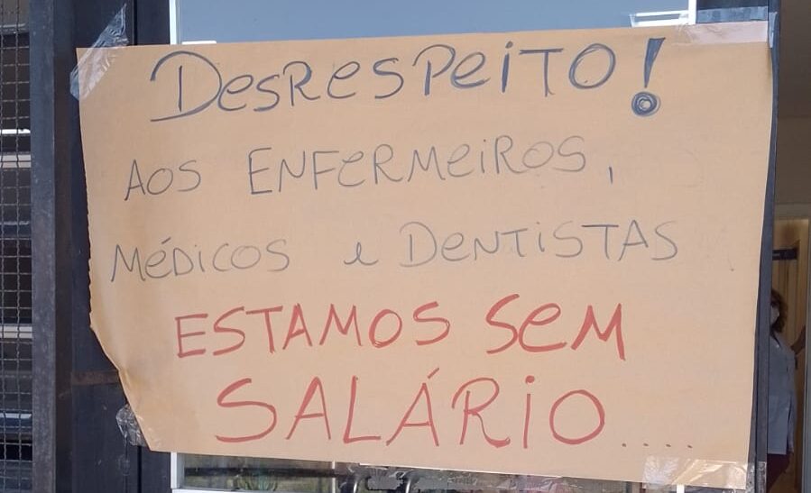 Mas o presente do dia foram as notícias e ameaças na saúde, sem o pagamento de seus proventos os funcionários das UBSs sentiram-se com o justo direito de protestar com cartazes avisando à população que ali permaneciam atendendo pelos pacientes, pois a saúde não poderia parar. Diante dos protestos os funcionários receberam uma nota dos gestores, onde diziam: