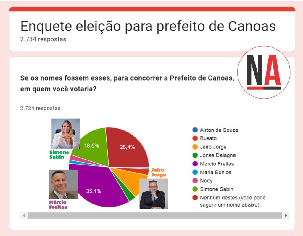 Vejam os resultados da enquete para Prefeitura de Canoas em 2024